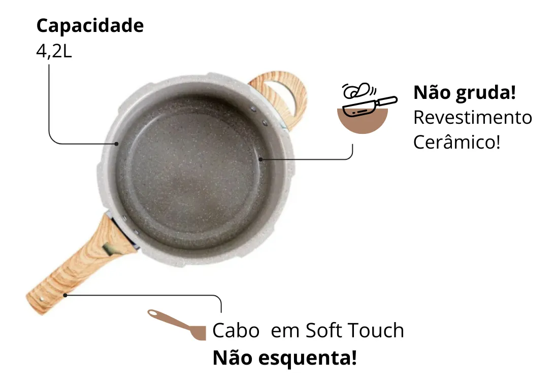 Ao fazer parte da linha Ceramic Life, este produto foi projetado para oferecer uma combinação única de desempenho, estilo e sustentabilidade, tudo em um só utensílio. A Panela de Pressão Ceramic Life Pressure 4,2L Areia Brinox é um investimento para quem deseja simplificar o dia a dia na cozinha com um item que une inovação e elegância.